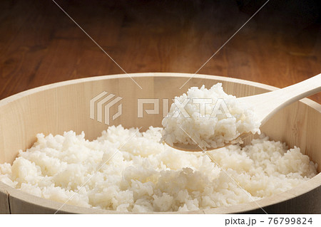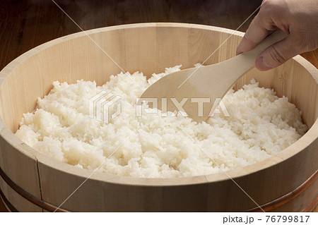 飯台に炊き立てのごはん