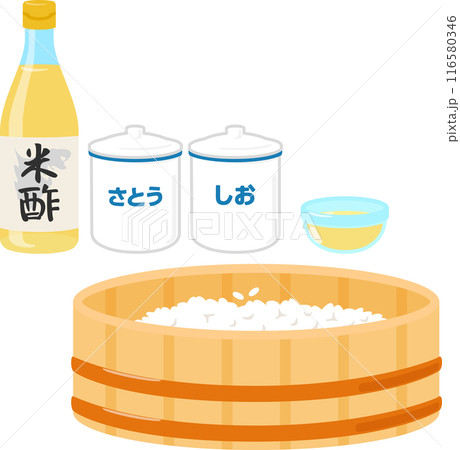 すし酢の材料と飯台に入ったご飯
