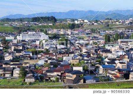 飯田市の天龍峡IC周辺から見た飯田市の街並みと中央アルプスの風景(長野県)