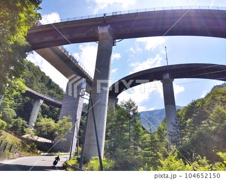 飯田市の天龍峡パーキングエリアから見た天龍峡大橋の風景(長野県)