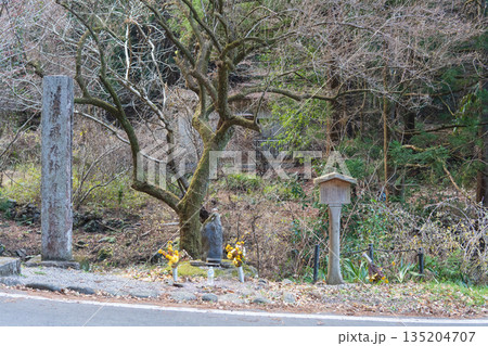 埼玉飯能の秋 紅葉の能仁寺 参道の石灯籠
