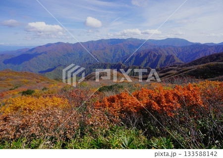二王子岳山頂からの紅葉と朳差岳