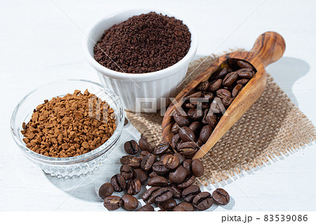 コーヒー豆、インスタントコーヒー、珈琲豆(粉)の比較