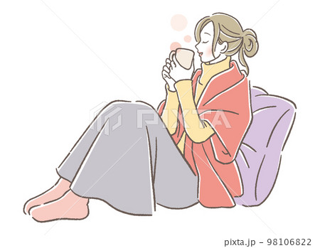 風邪かな?風邪のひきはじめかなんだか寒気がする温かい飲み物を飲む女性
