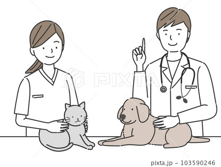 犬と猫の診察をする動物病院のスタッフ