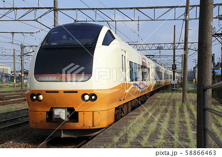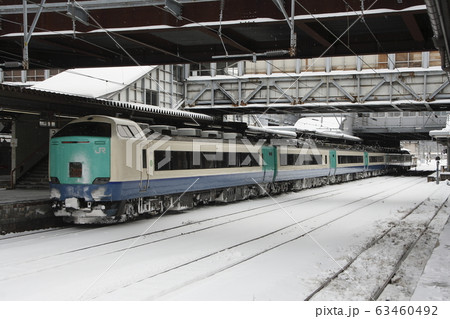 冬の秋田駅に停車中の特急いなほ号(485系リニュアール車)