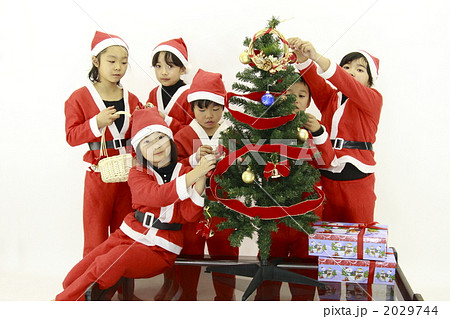 クリスマスツリーを飾る子供たち