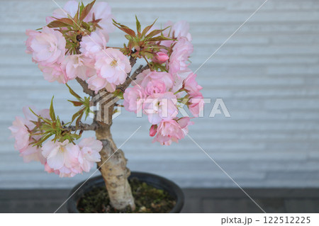 満開の桜盆栽(旭山桜)