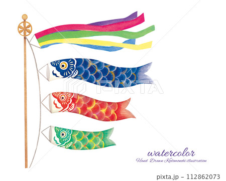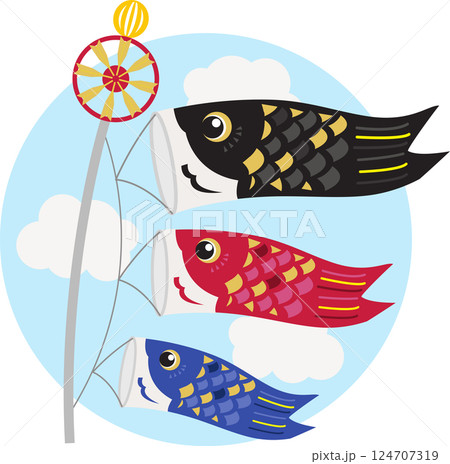 シンプルでかわいい手描き風の鯉のぼりのベクターイラスト