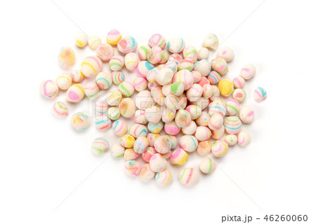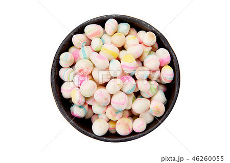 皿に乗せたカラフルな手毬麩【白背景・切り抜き】