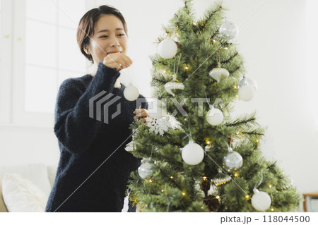 クリスマスツリーと女性