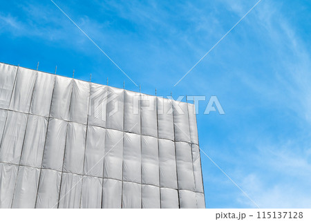 ビル建設中の養生幕と足場 b-4 ライトカラー