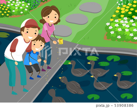 Stickman Family Kid Feed Ducks Illustration