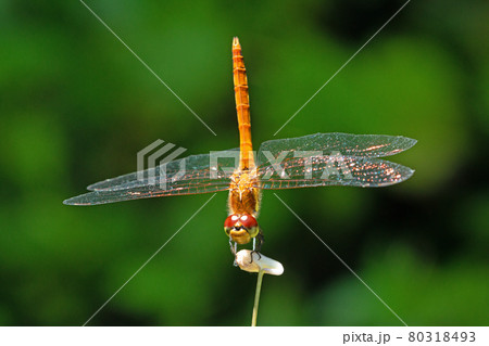 花が終わったオオバギボウシの花茎に止まるナツアカネ 福島県只見町