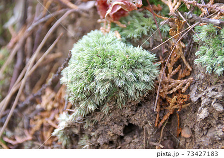 ブナ倒木に発生した饅頭のようなキノコ 福島県只見町