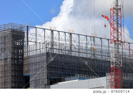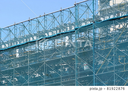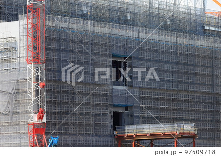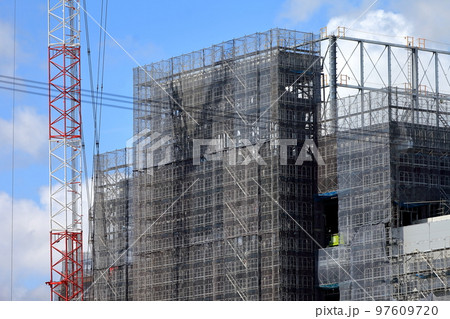 建築工事現場(シートを張った外部足場) イメージ