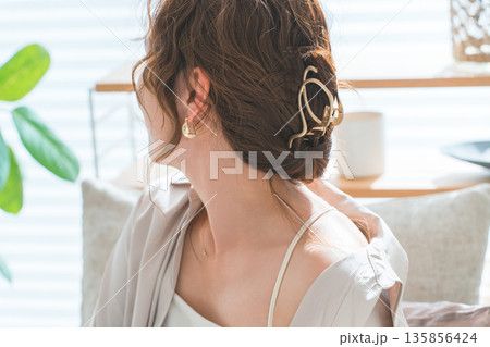 アクセサリー,ピアス,イヤリングをつける女性の横顔