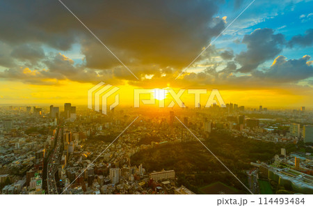 東京都市風景 六本木超高層ビルから望む東京街並全景 夕景 夜景 渋谷 新宿高層ビル