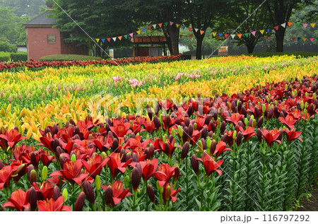 色鮮やかな満開のゆり園