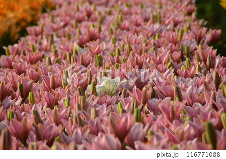 埼玉県深谷市アクアパラダイスパティオ 朝咲き誇る美しい百合