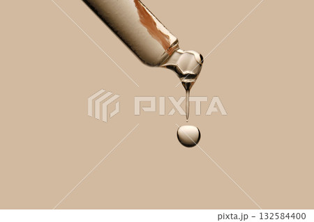 Serum in a pipette close-up on a beige background.
