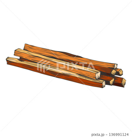 Fragrant wooden stick vector sketch, sandalwood tree timber product, hand drawn perfumery and aromatherapy production