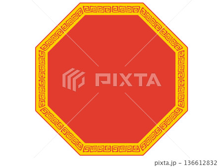 中華風フレーム。筆タッチの手描き雷紋。赤の八角形。
