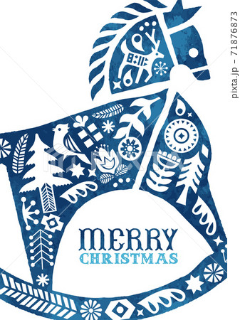 Christmas watercolor folk vintage horse toy card