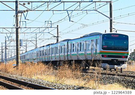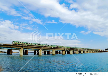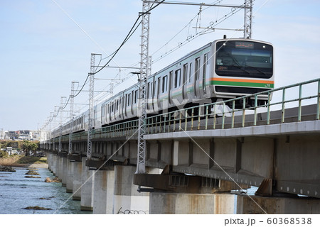 相模川を渡る東海道線 JR東日本 E231系電車