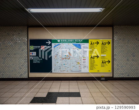 鉄道地下駅の連絡通路に掲示された出口案内・乗り換え案内・周辺案内図