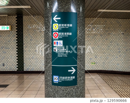 都営新宿線「馬喰横山駅」の改札口と案内表示