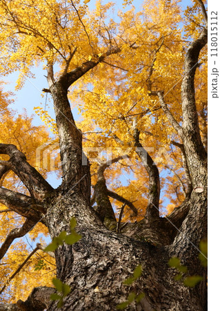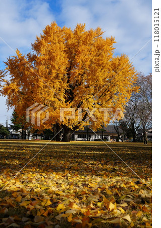 イチョウの落ち葉がじゅうたんのようになっている公園