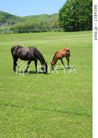 牧場の馬