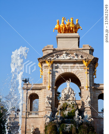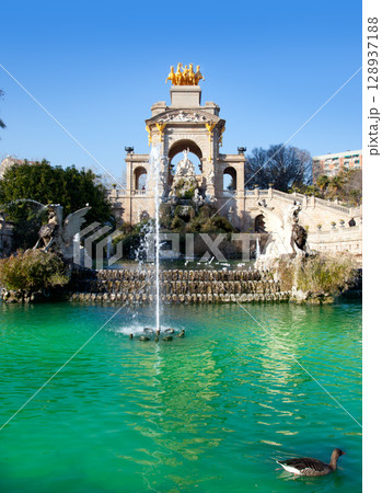 Barcelona ciudadela park lake fountain and quadriga