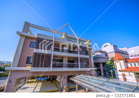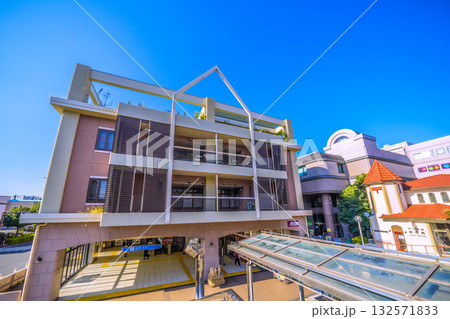 日本の横浜都市景観 横浜市営地下鉄 中川駅(副名称・東京都市大横浜キャンパス前)出入口などを望む
