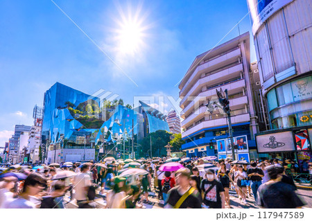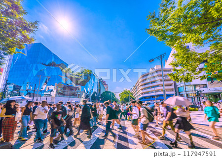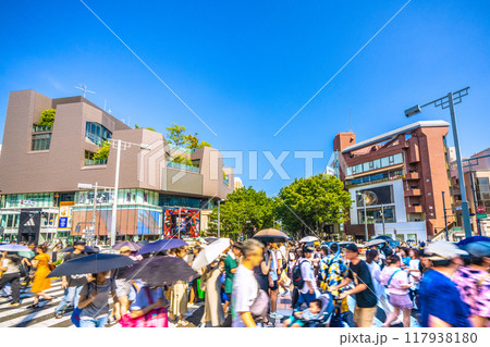日本の東京都市景観 神宮前の交差点や東急プラザ原宿「ハラカド」などを望む