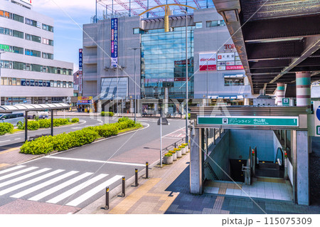 日本の横浜都市景観 横浜市営地下鉄グリーンライン 中山駅出入口1などを望む