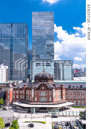 東京駅舎と丸の内高層ビル群の夕景 東京都千代田区