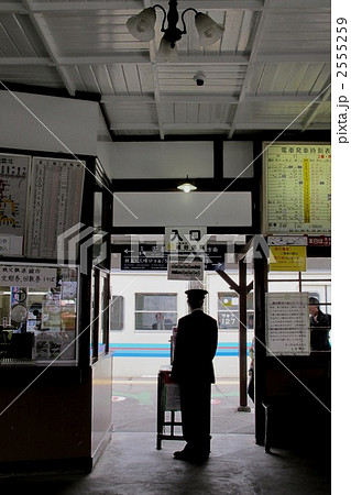 鉄道駅舎と駅員