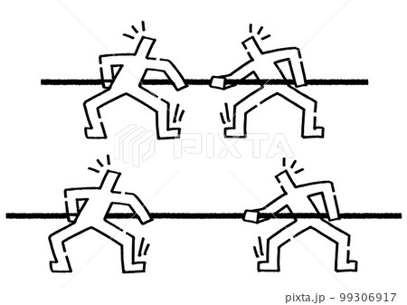 綱引きをする2人の棒人間