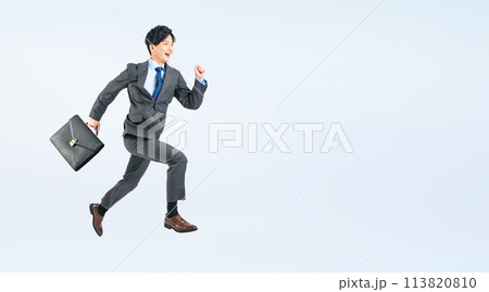 ジャンプする男性ビジネスパーソン 手作業で精密に切り抜いた背景透過全身写真PNG