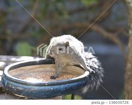 野鳥の餌場にやって来たタイワンリス