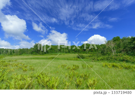 夏の晴れた日の湿原