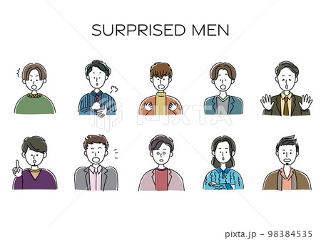 驚く、発見、びっくりする男性のアバター、シンプルなアイコンセット