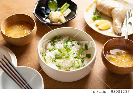チキンのコンフィと七草ごはんの食卓