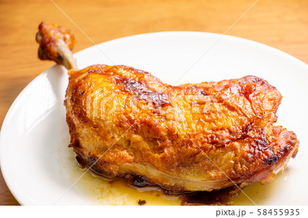 ローストチキン 鶏 もも肉 白背景