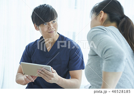 整体 整体士 マッサージ カイロプラクティック 女性 患者 男性 白バック