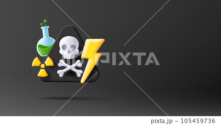 3d render illustration of nuclear and chemical danger with scull and bones sign and glass chemical breaker, black triangle