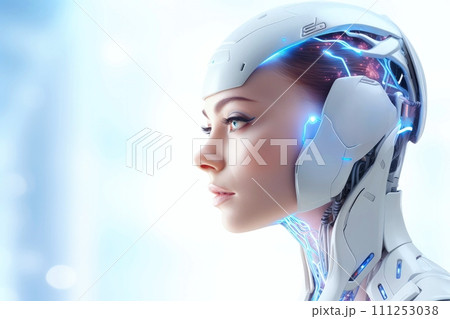 Abstract 3d robot head with artificial intelligence, Generative AI