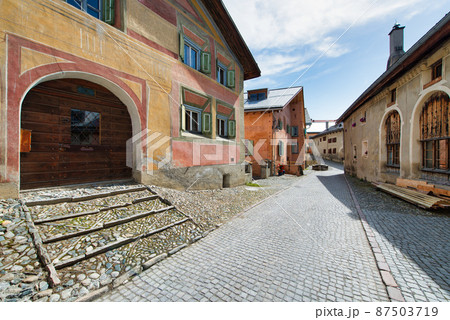Houses in the Swiss Alpine village of Zuoz